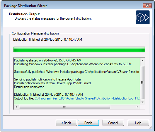 Using AdminStudio’s Package Distribution Wizard, you can publish individual Windows Installer (.msi), Microsoft App-V 4.x (.sft), or legacy setup (.exe) packages to ConfigMgr. You can use the Package Distribution Wizard to publish packages on your file system or from your the Application Catalog tree in Application Manager.