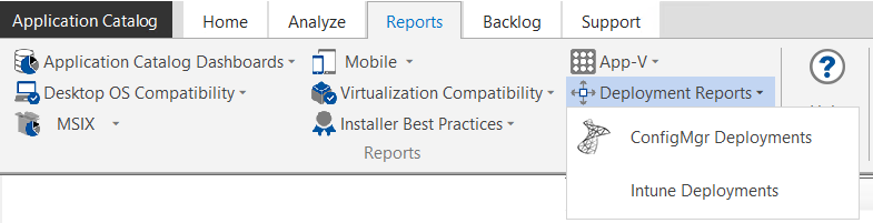 2. In the ribbon, click Deployment Reports and then select Intune Deployments from the list.