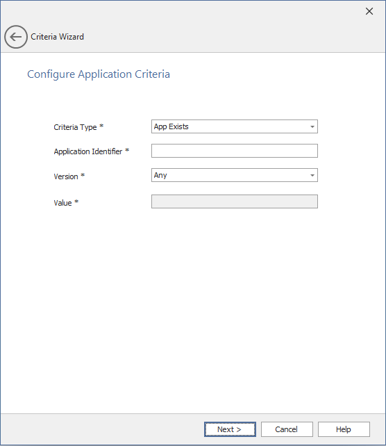 | Criteria Type | Select one of the following Criteria Type: • App Exists • App does not exist |