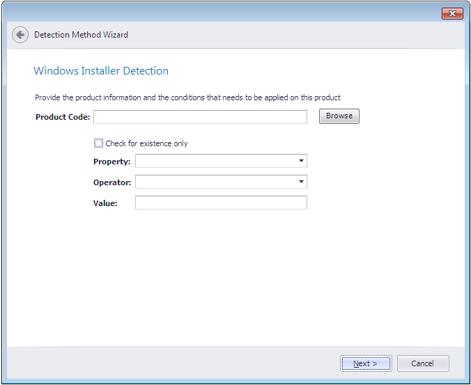 Product CodeClick Browse and select the Windows Installer .msi file that you want to use in this detection method.
