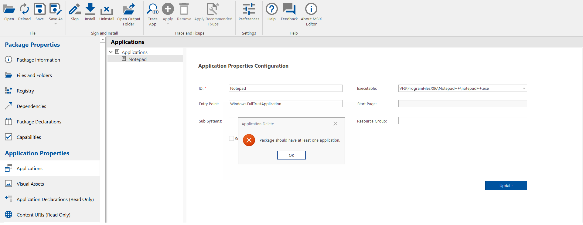 Make sure that at least one application is required in the MSIX package, if not below error message will appear.